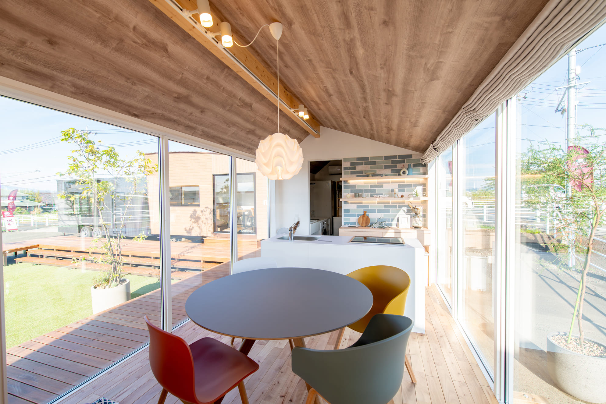 トレーラーハウスは、いつでも場所を変えることができ、複数台での組合せも可能です。